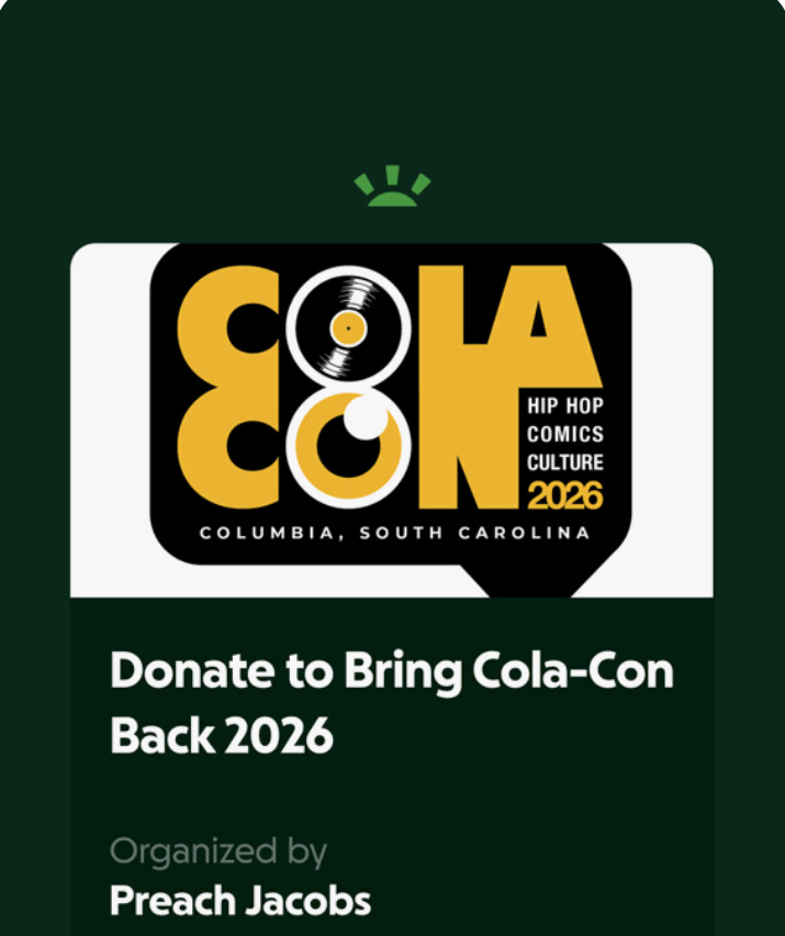 I’m also hoping to attend Cola Con 2026. It’ takes place in Columbia SC and blends comic book culture with hop-hop. It’s a celebration of storytelling and music. They need your help bring it back to the Midlands. So please share and donate to the gofund me. Just click the image below to support. Thanks!